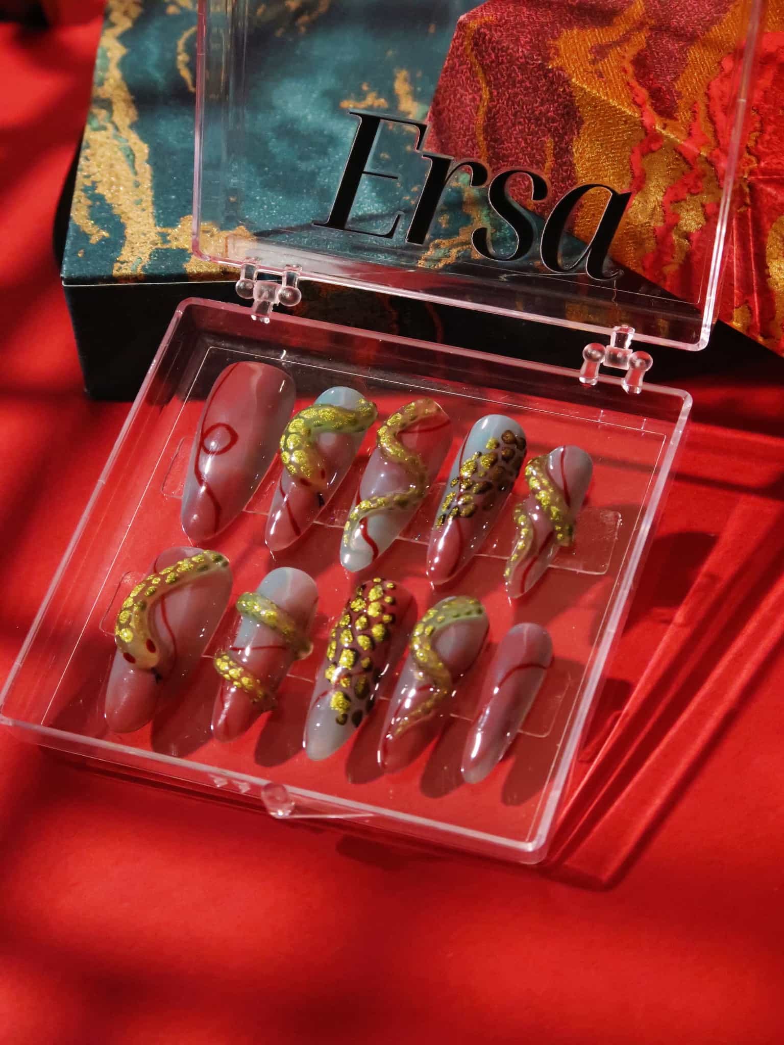 Step into the enchanting world of Xiaoqing with the Olive S press-on nails, inspired by the vibrant and courageous character from the beloved "Legend of the White Snake." This set mirrors the captivating green shades of Xiaoqing's serpentine form, brought to life with a mesmerizing blend of olive and iridescent tones that suggest the lush, mysterious groves of her mystical realm. Employing innovative layering techniques, we've interlaced varying shades of green to create a sense of depth and movement, capturing the essence of Xiaoqing's dynamic spirit. Accented with hand-painted detailing, each nail is a testament to the legendary green snake's enduring charm.